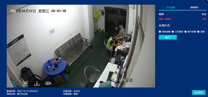 手機檢測:AI行為分析邊緣計算盒子對圖片中使用手機的行為做檢測分析,并告警上報,如圖是在車間辦公室違規(guī)使用手機的行為;